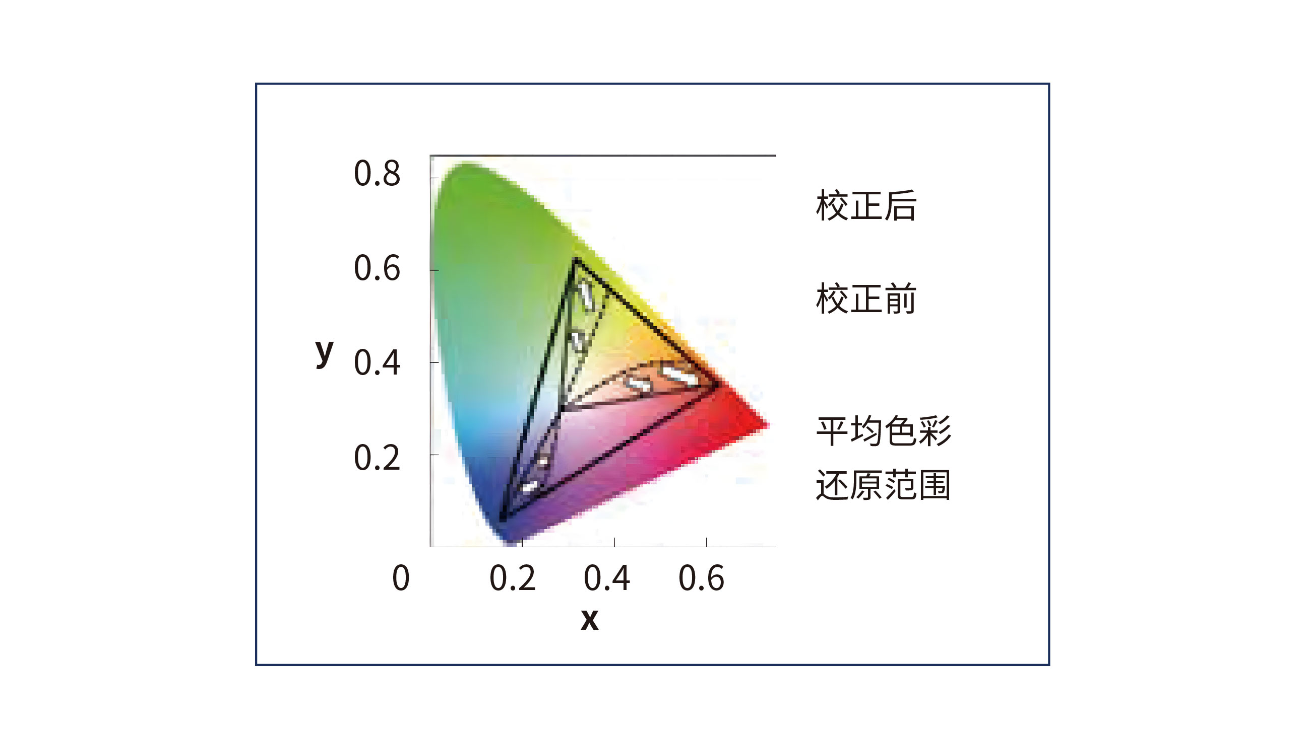液晶顯示器上每個小區域的顯示性質由RGB輸入信號決定。這項技術能糾正每個RGB信號上色彩和亮度的不一致,請見右圖。應用在 PN-V701上的這項技術是經過夏普改良過的升級技術,提升了準確度