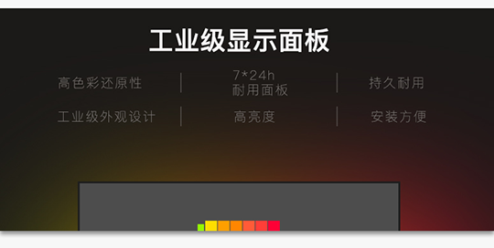 工業級顯示面板,支持7*24小時持續運行,7*24小時耐用面板滿足您持久穩定的使用需求,廣視角、高色彩還原性、高亮度、持久耐用,工業風格的鈑金設計帶來超強質感的良好保護,美觀大方,安裝方便