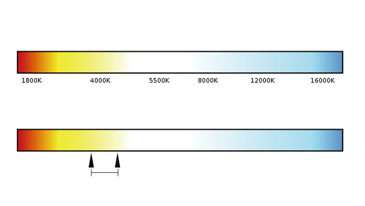 顯示器不僅提供了常見的色溫有 5000K、6500K、9300K 色溫值,更 是提供了以 100K 為最小步進值從 2600K 到 10000K 調節